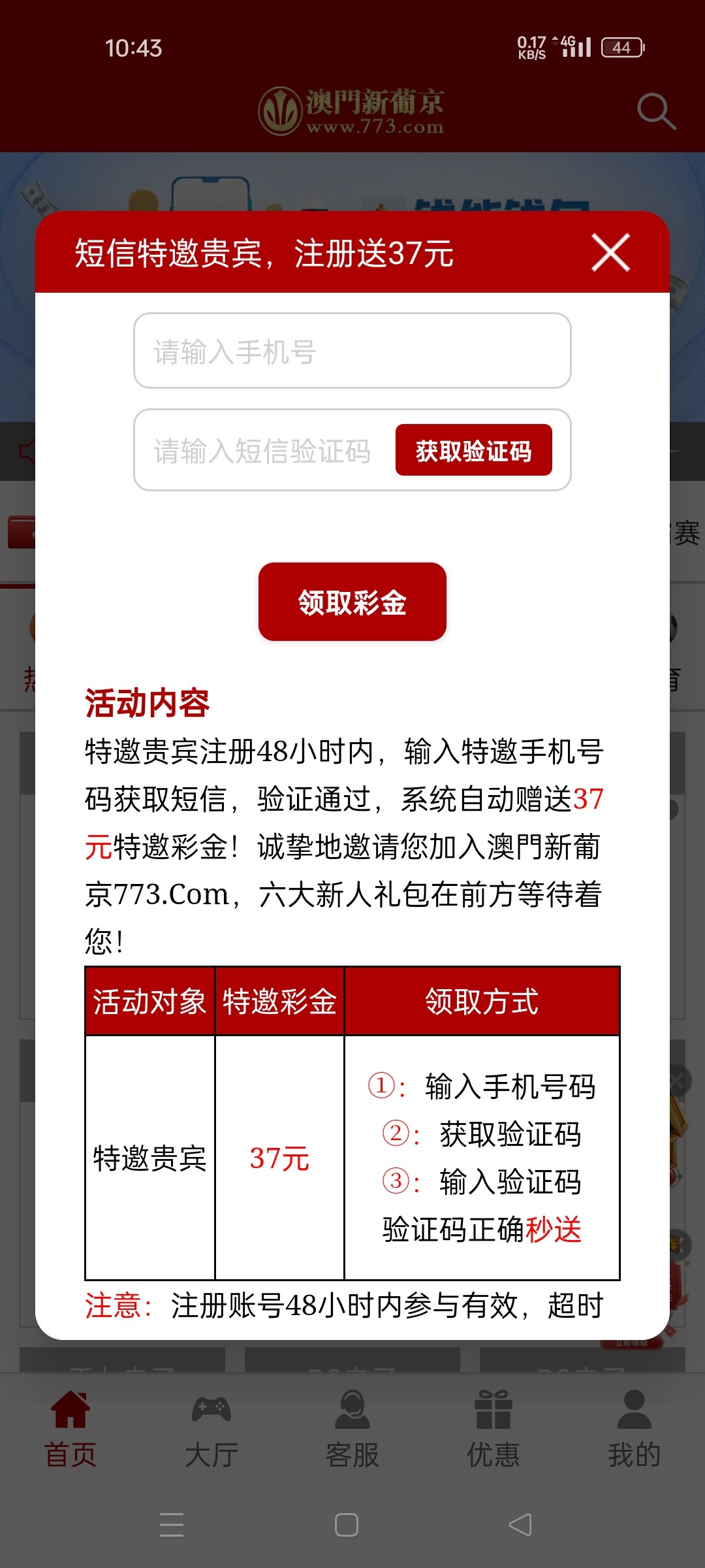 看看自己是不是特邀 ,是的话领取37元 ,没玩过的手机号都可以成功