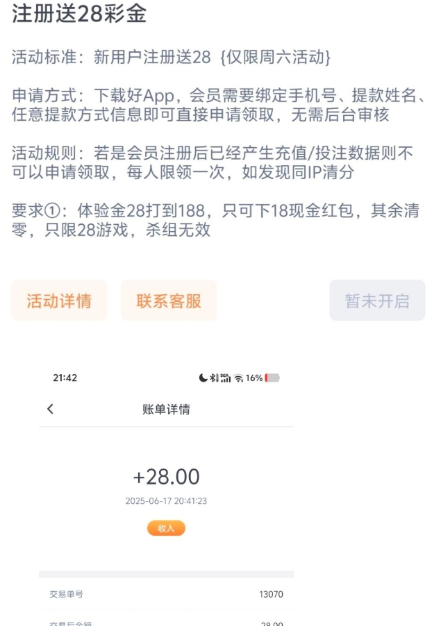 新用户注册绑定好提现信息和手机号,联系在线客服申请28彩金打到188下18猪脚饭