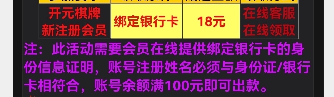 新用户注册绑卡联系在线申请18彩金,时间一月1~3号,部分需要提供银行卡照片