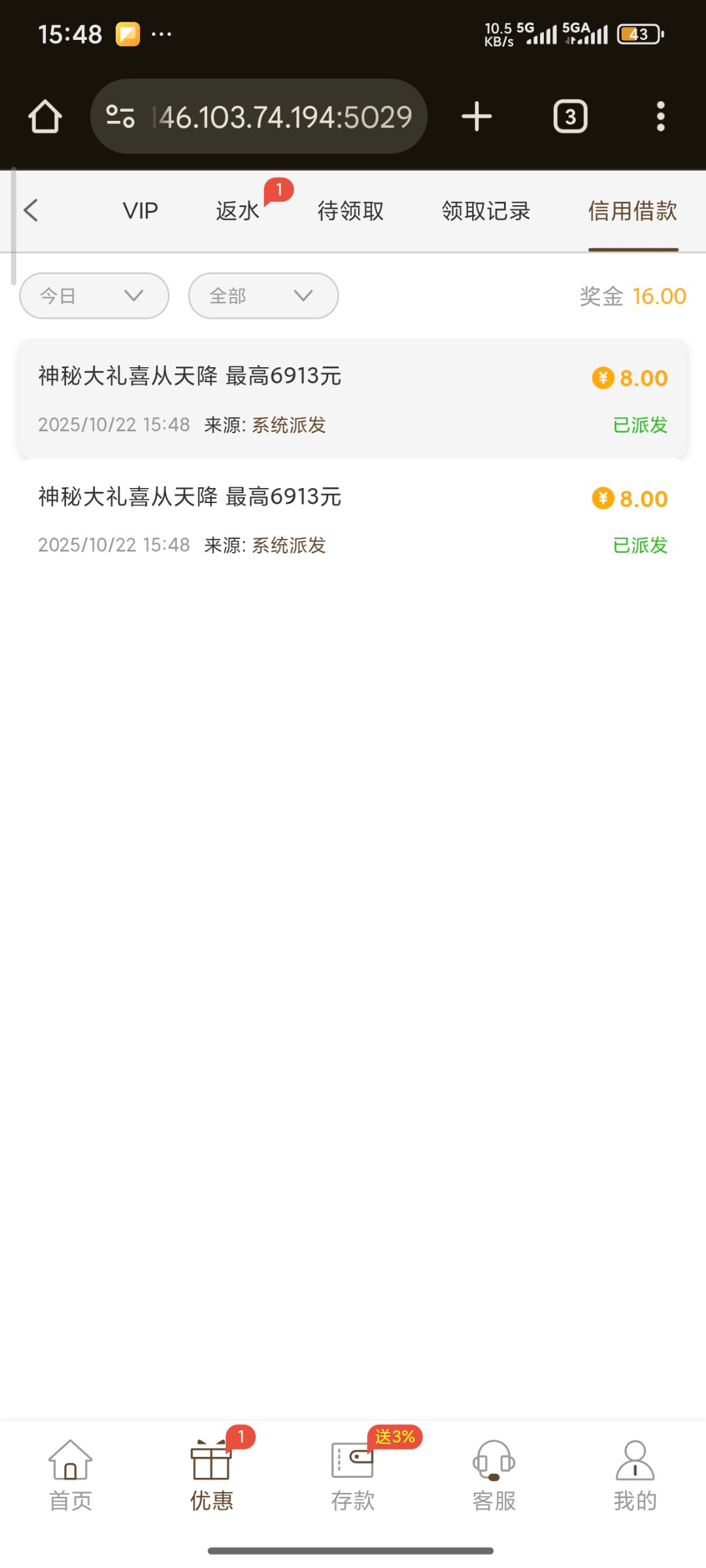领了两个号没打出来