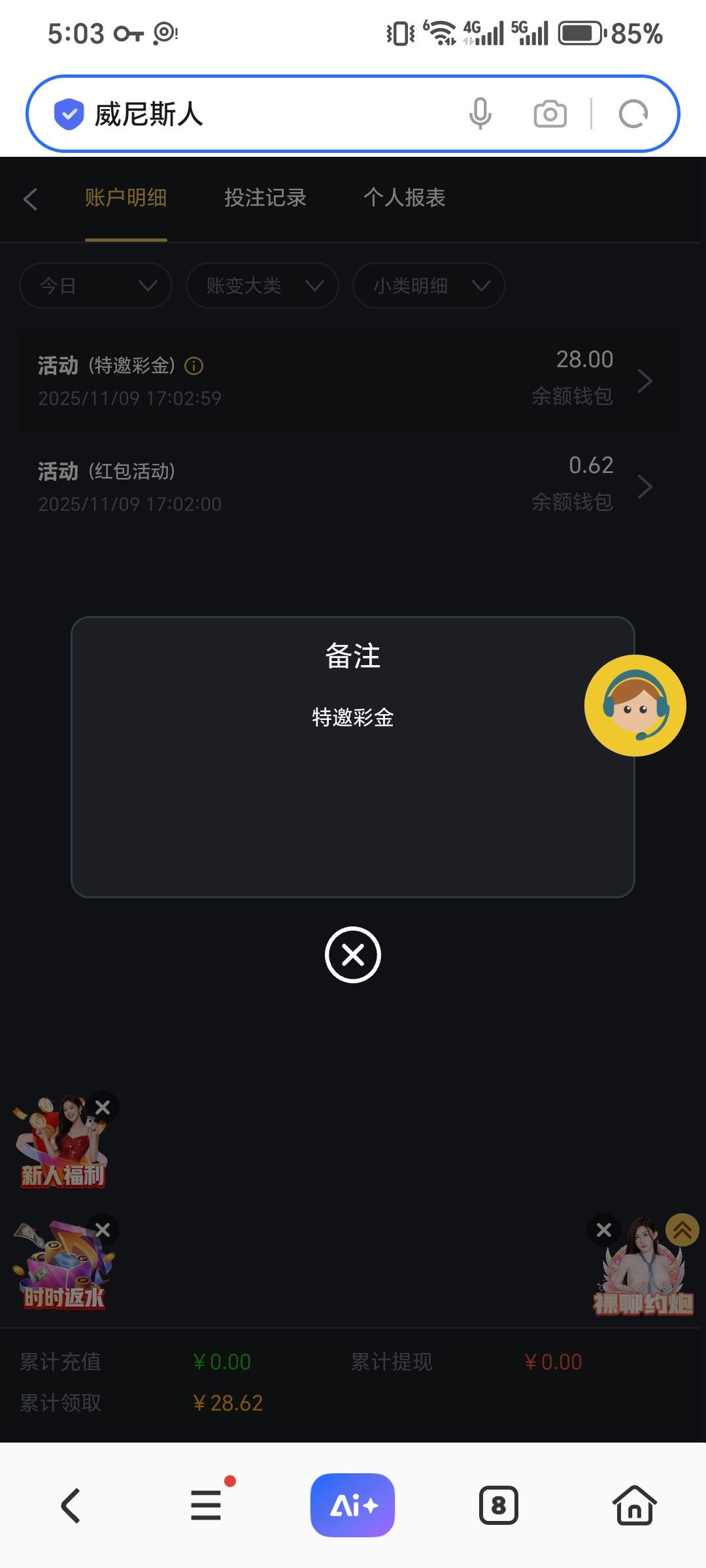 威尼斯人接到电话,有漏接可以找客服碰瓷