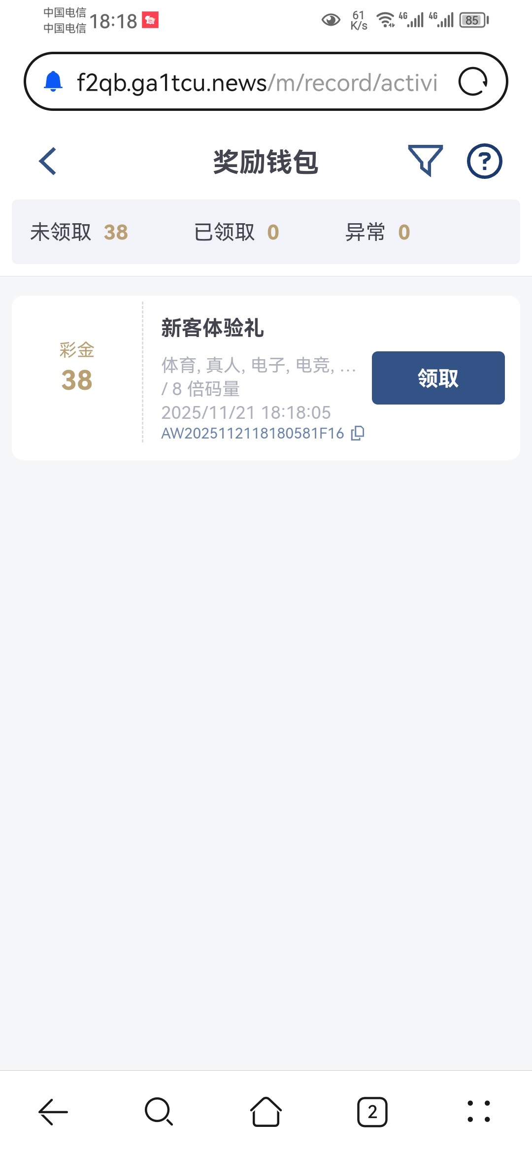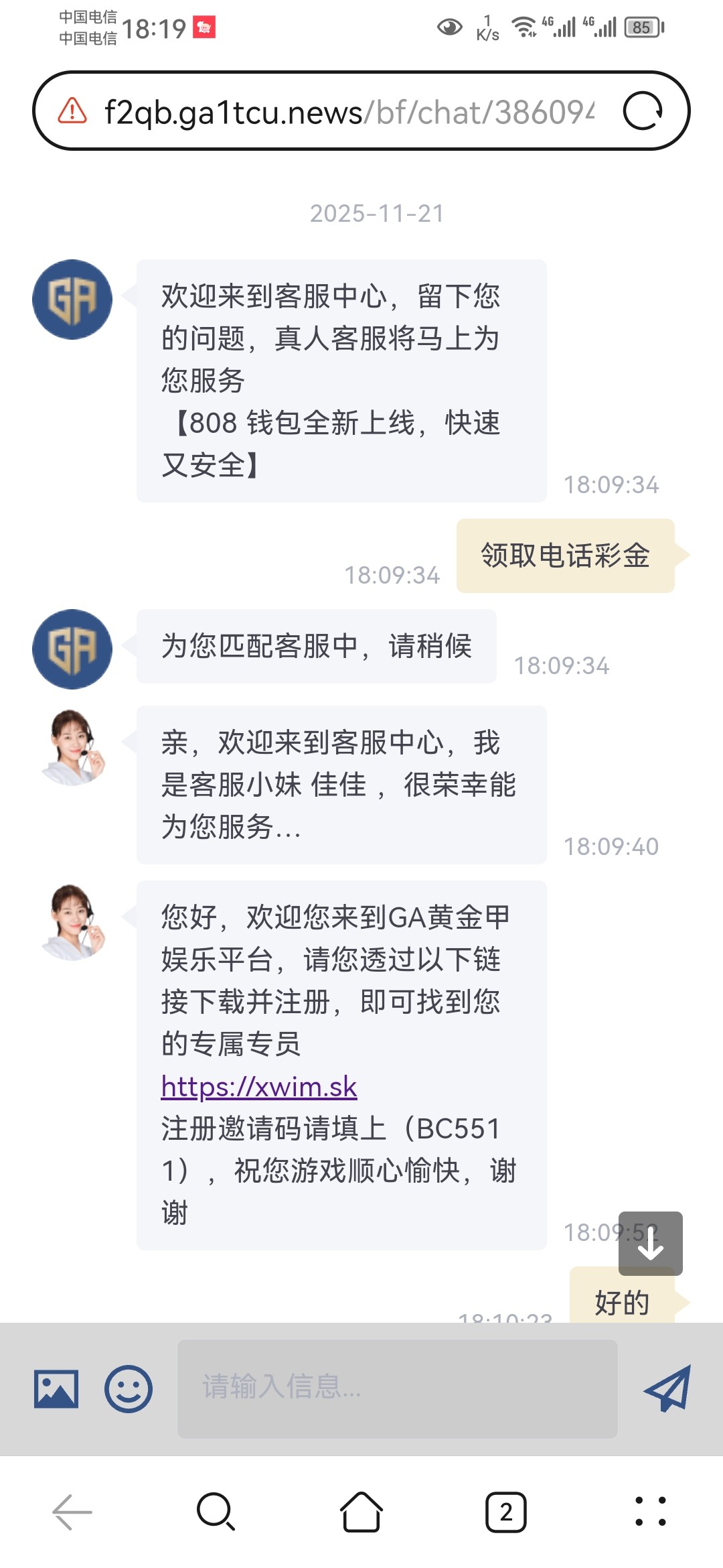 电话彩金不知道碰不碰的到连续送3天可以去试试网址185511.cc