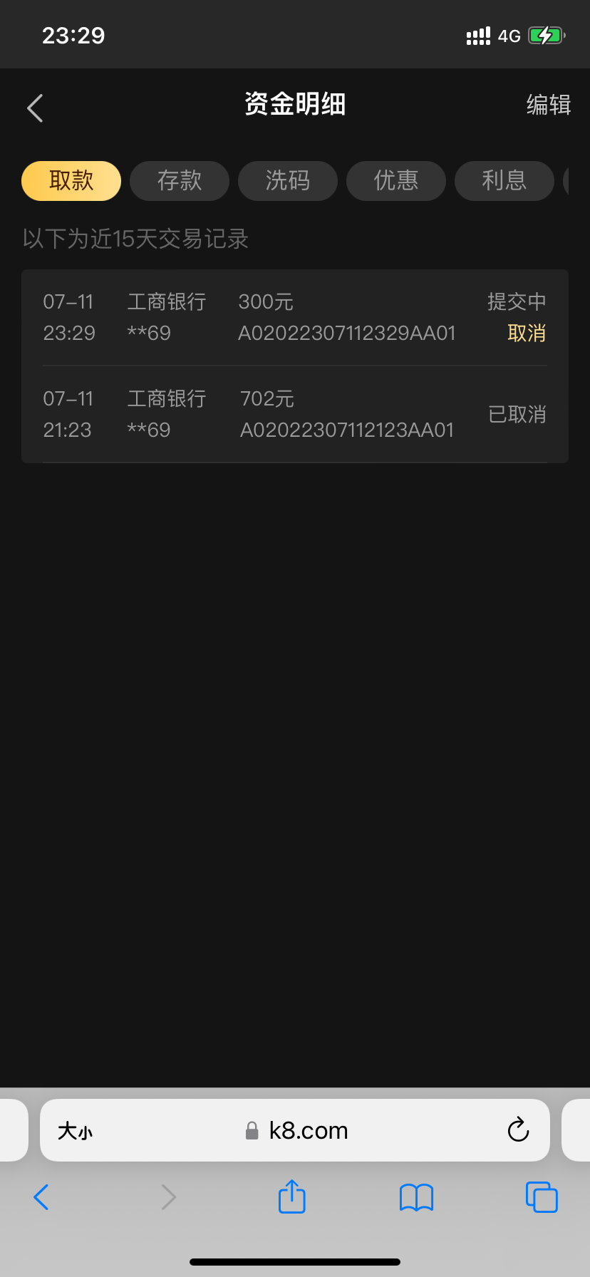 送了28u,打k8打到了700提现,但是刚刚打电话过来说最多只能盈利300多余的要扣相当于白漂300块钱