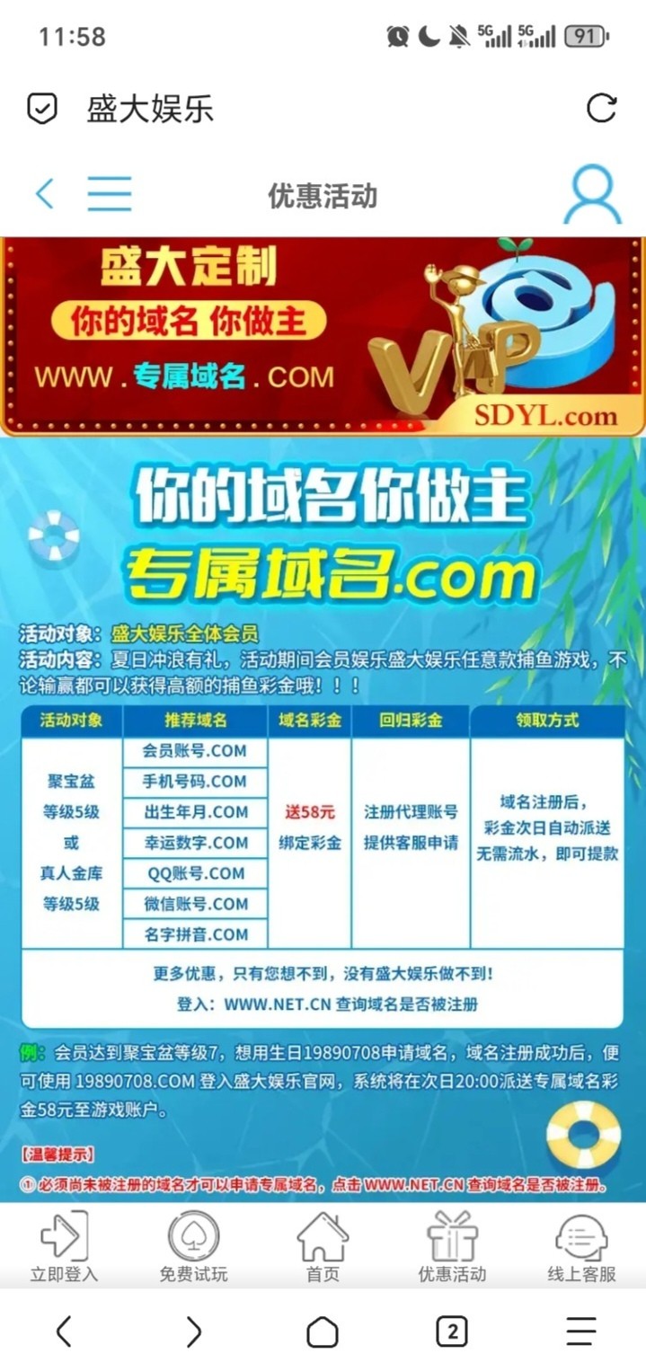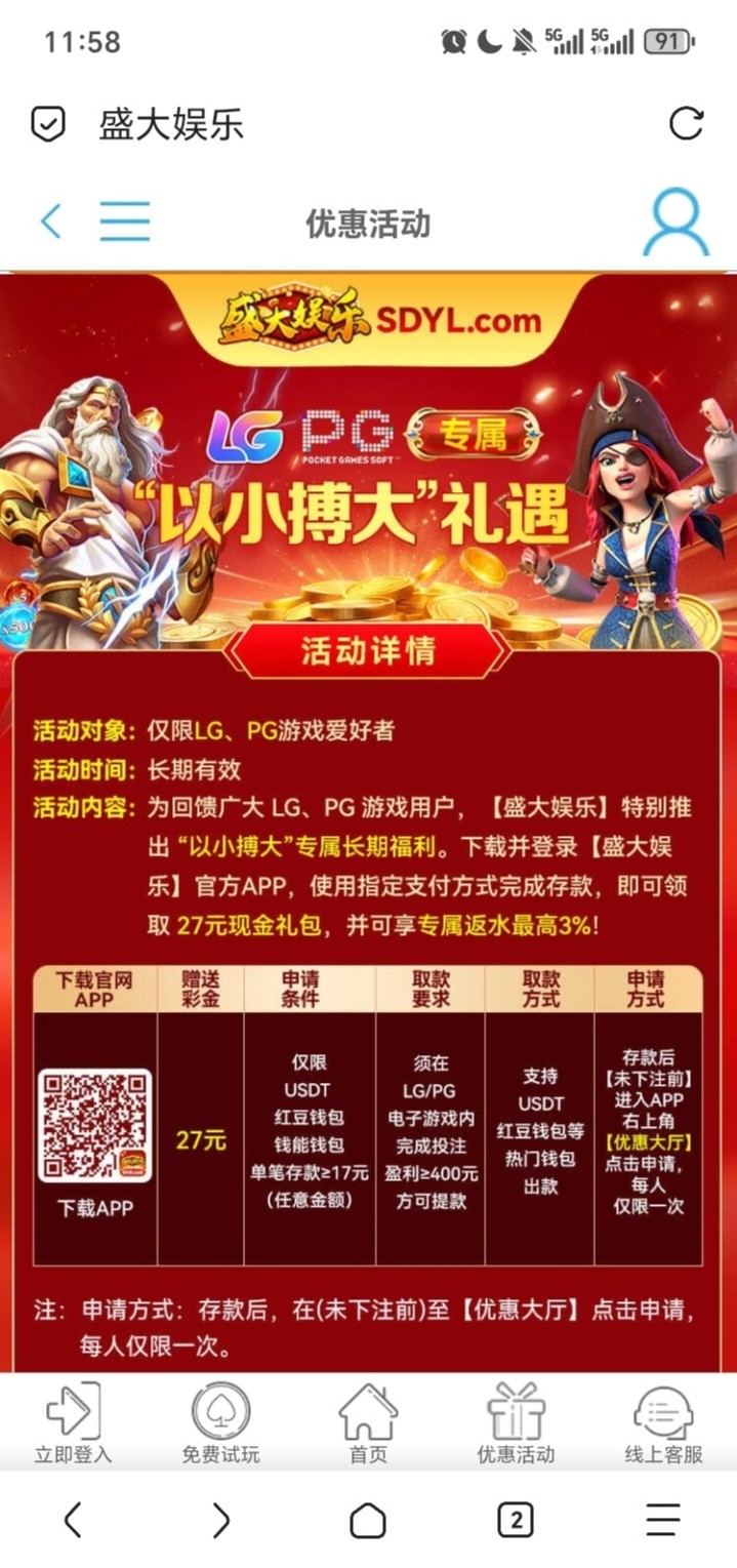 刚登陆看见这两个活动符合的可以去试试。盛大娱乐之前玩过等级5以上的可以去领这个域名58免费彩金。还有一个17+27的以小博大活动链接sdyl.com