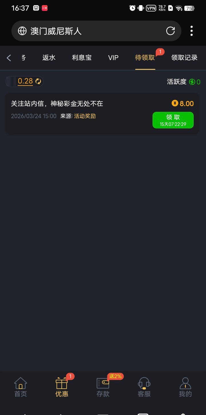 【威尼斯712】神秘彩金