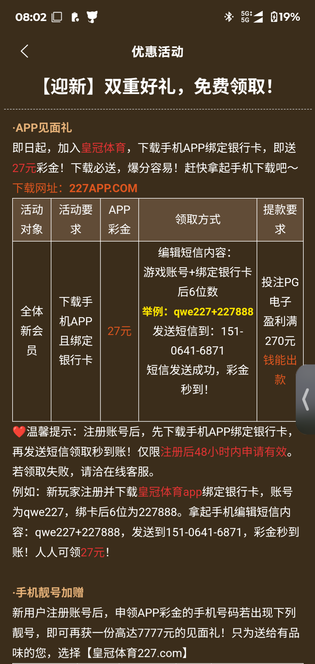 【皇冠227】 发短信秒27