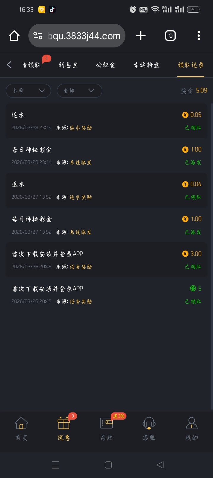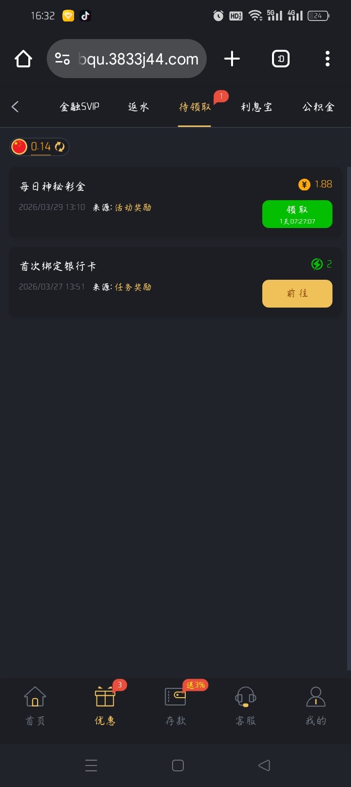 上个月充过一次10块这几天下载领了三块,然后每天都是一块的神秘彩金,有号的上去看看有没有