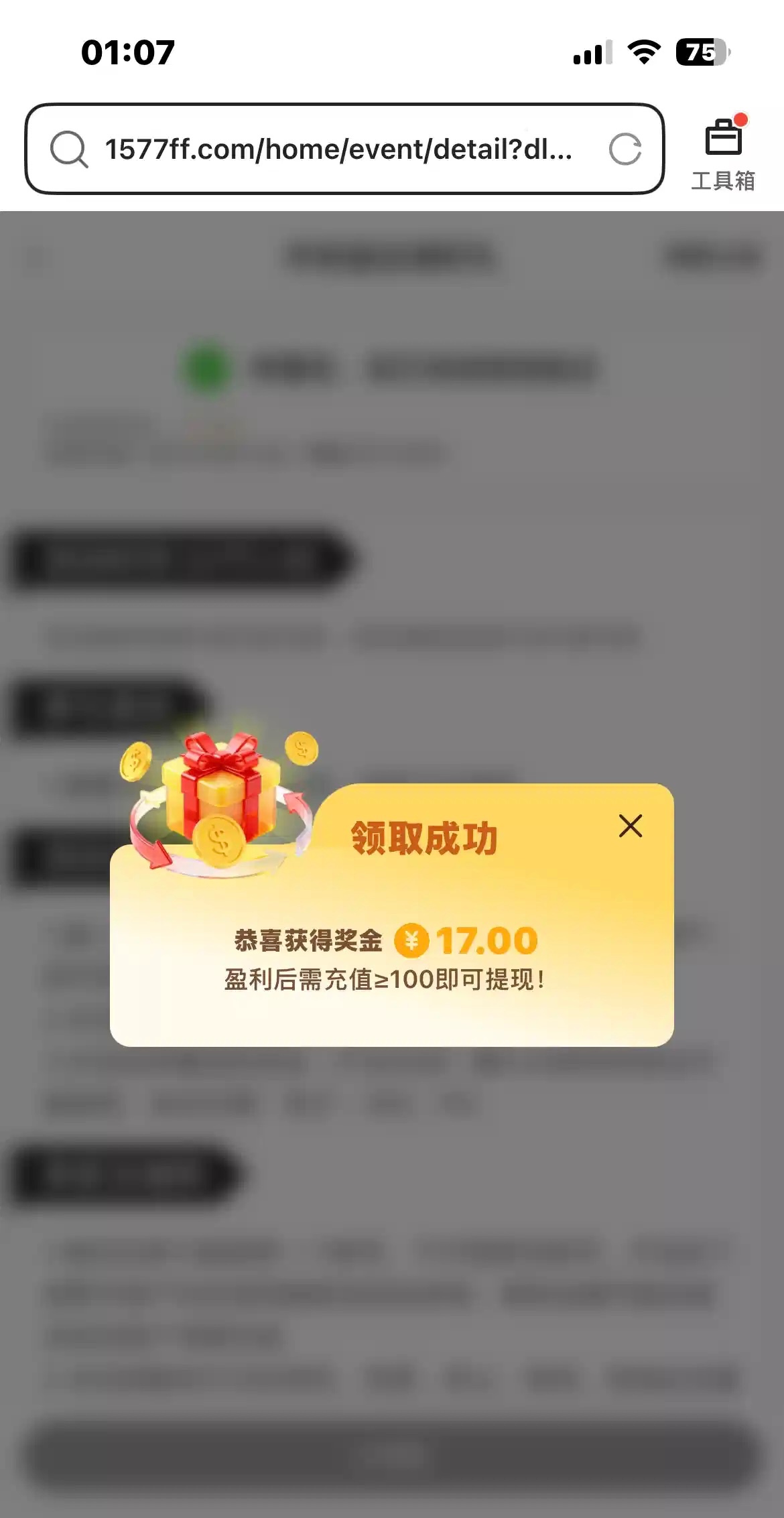 链接1577.com 我是接到电话才去的优惠里面自助申请打出来要充100