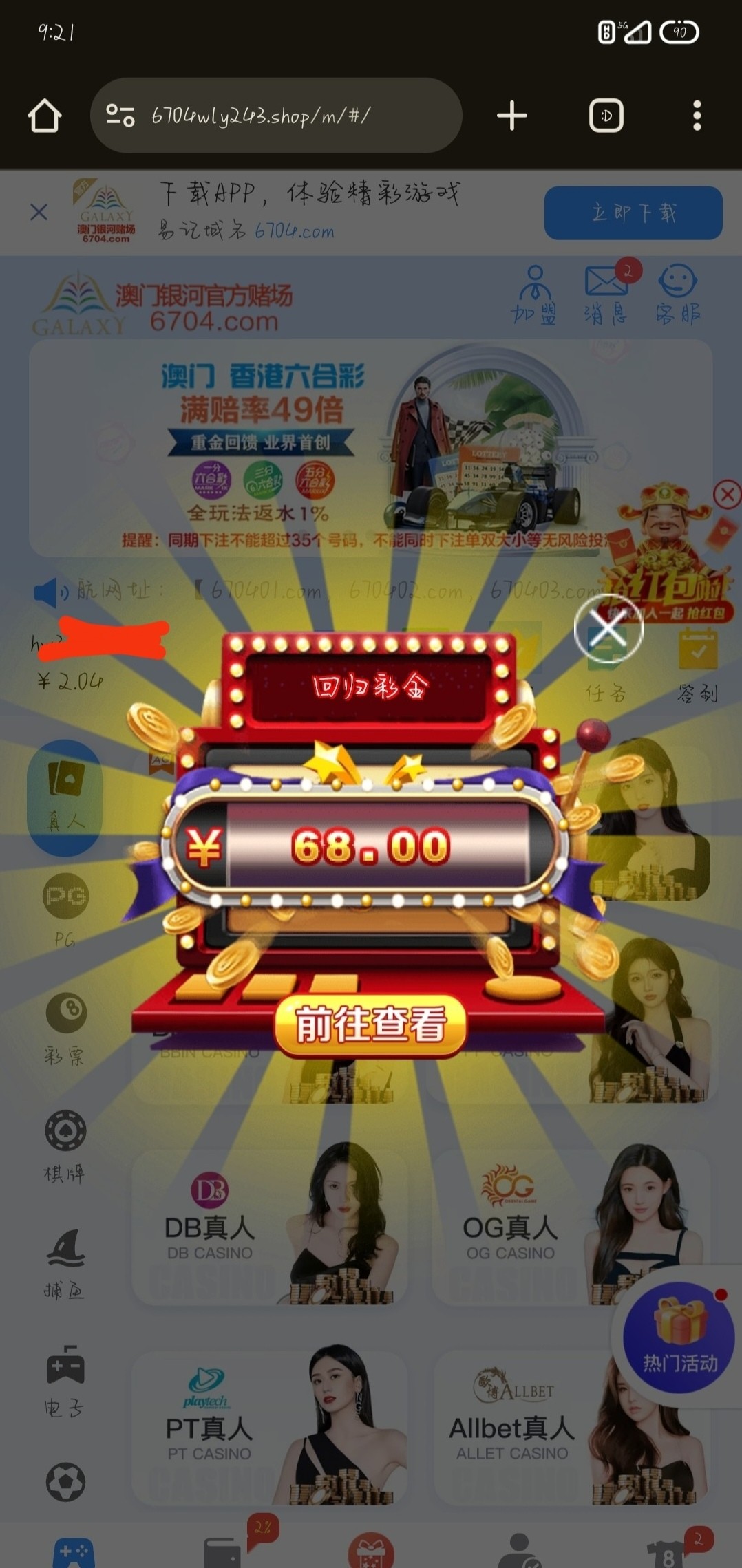 【银河6704】回归彩金