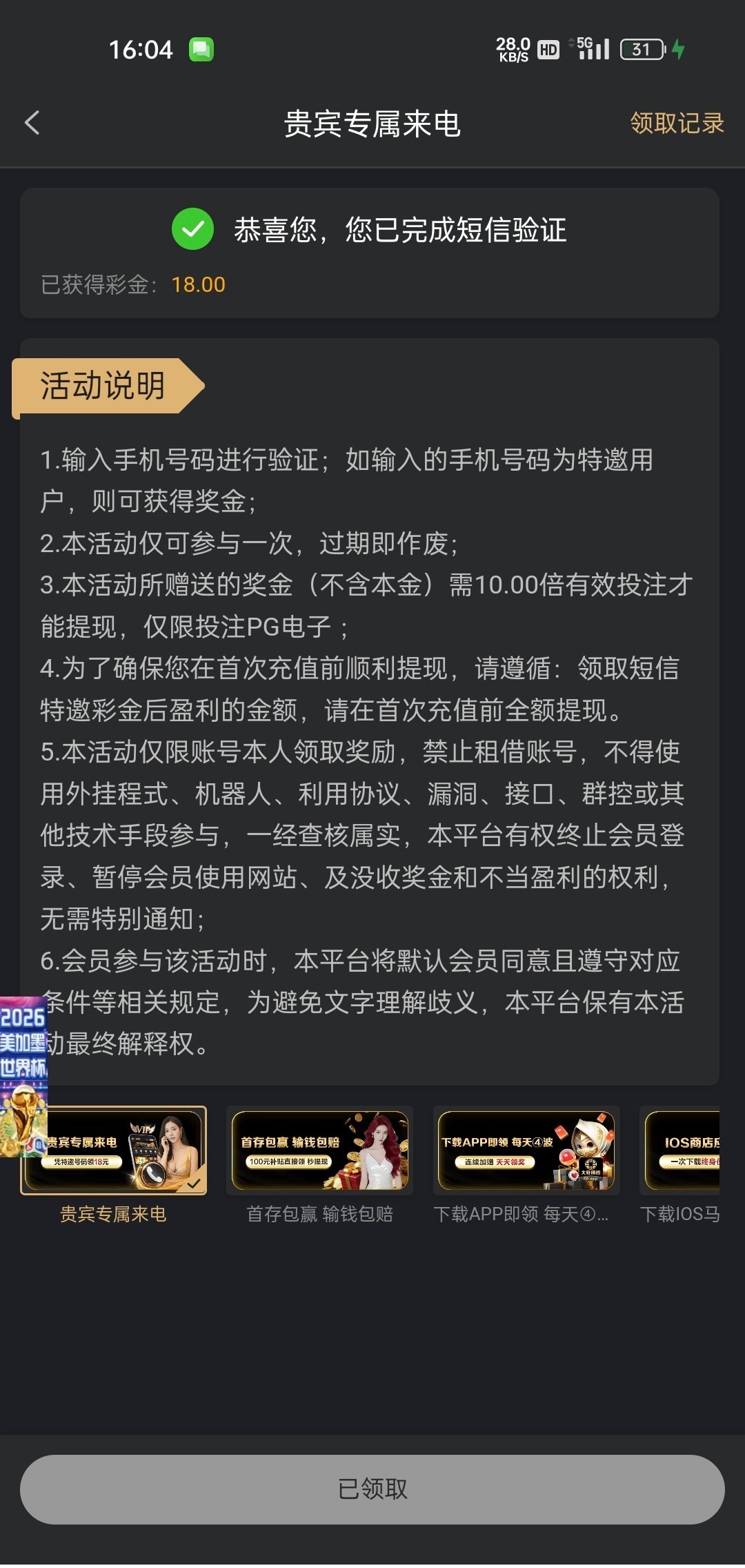 【大发68】电话特邀彩金