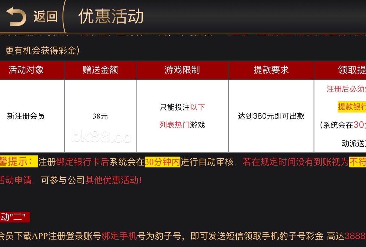 新用户特邀注册绑卡30分钟内自动送38彩金