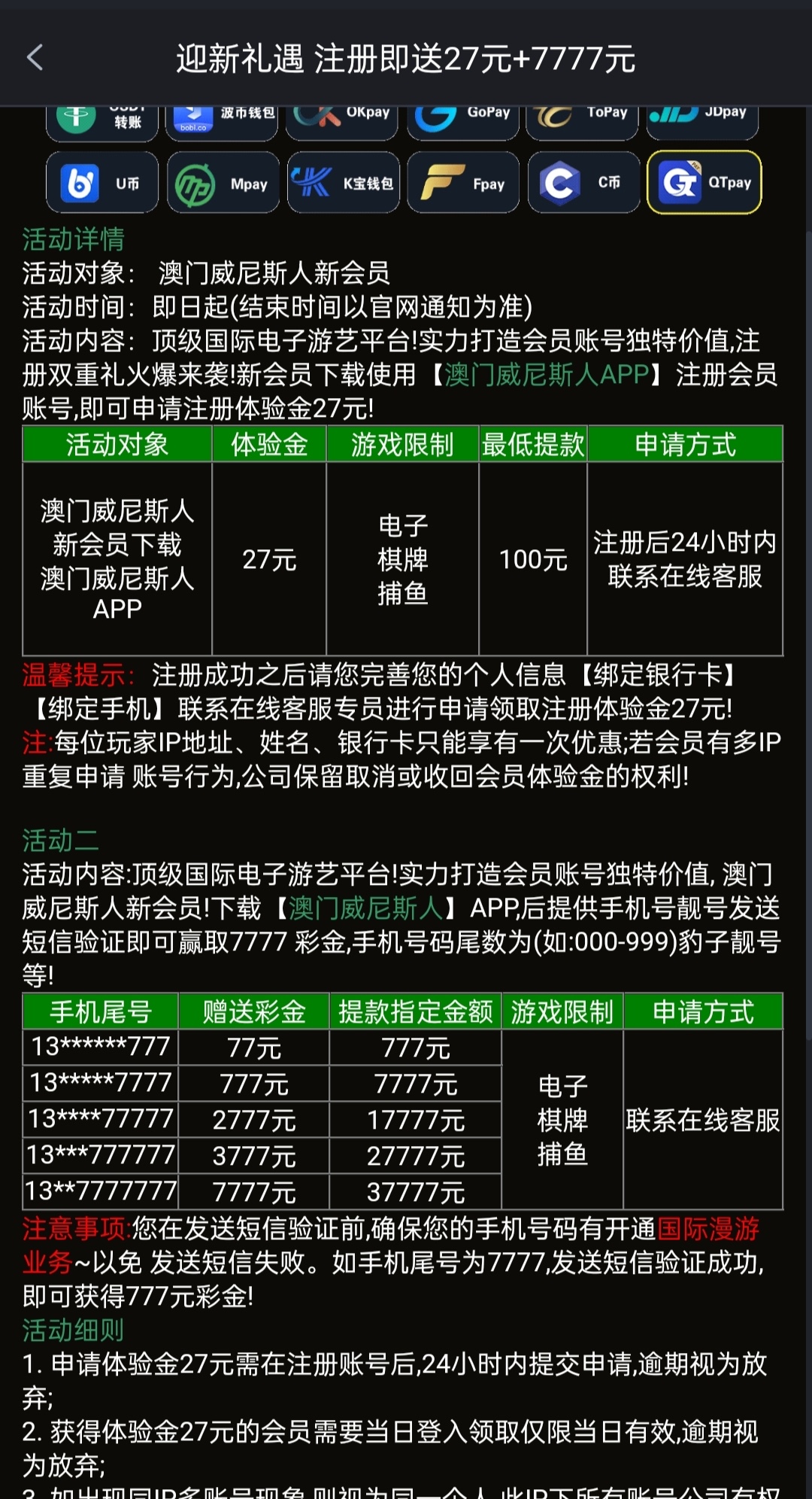 新用户注册绑定信息联系在线客服申请27彩金,具体看活动要求。
