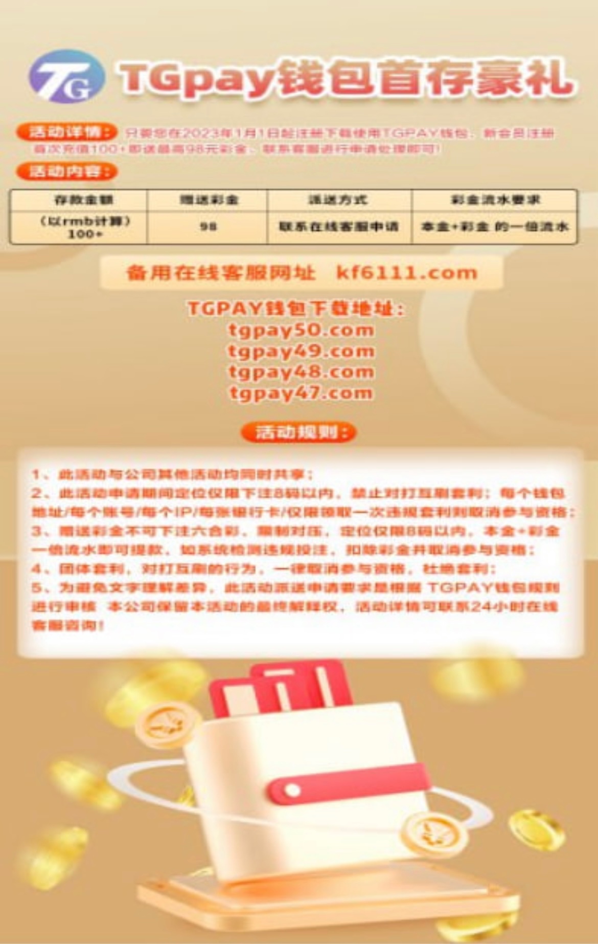 彩娱乐新注册Tgpay钱包充值100送98 一倍水出款限8码 直接找客服申请不需要特邀 邀请码30149