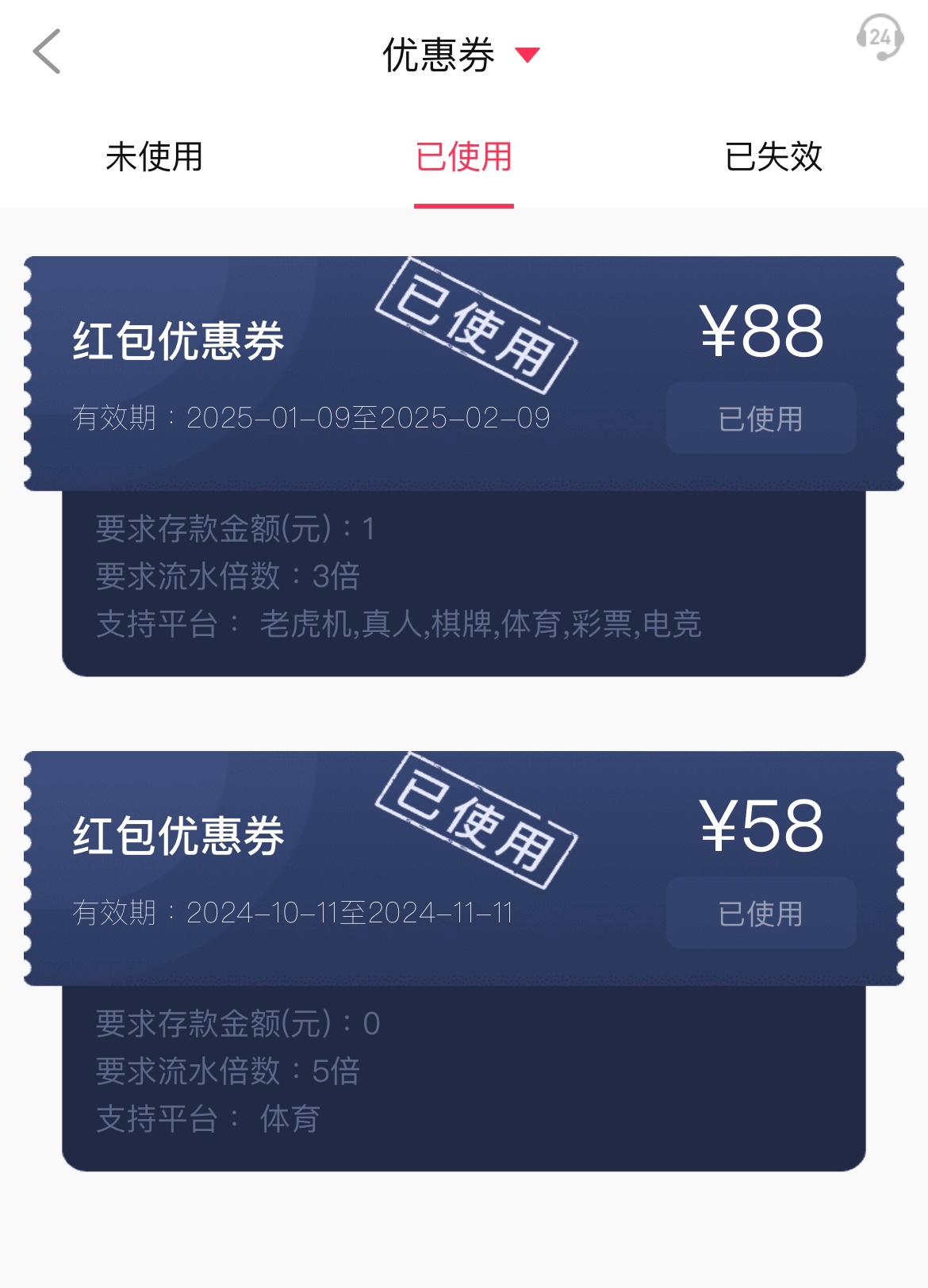 跟头号玩家一样老号能登入上去的基本上都会有这个优惠卷 但是都需要存款一定的金额才能领取每个人条件不一样 限制的游戏也不一样感兴趣的老哥可以去试一试