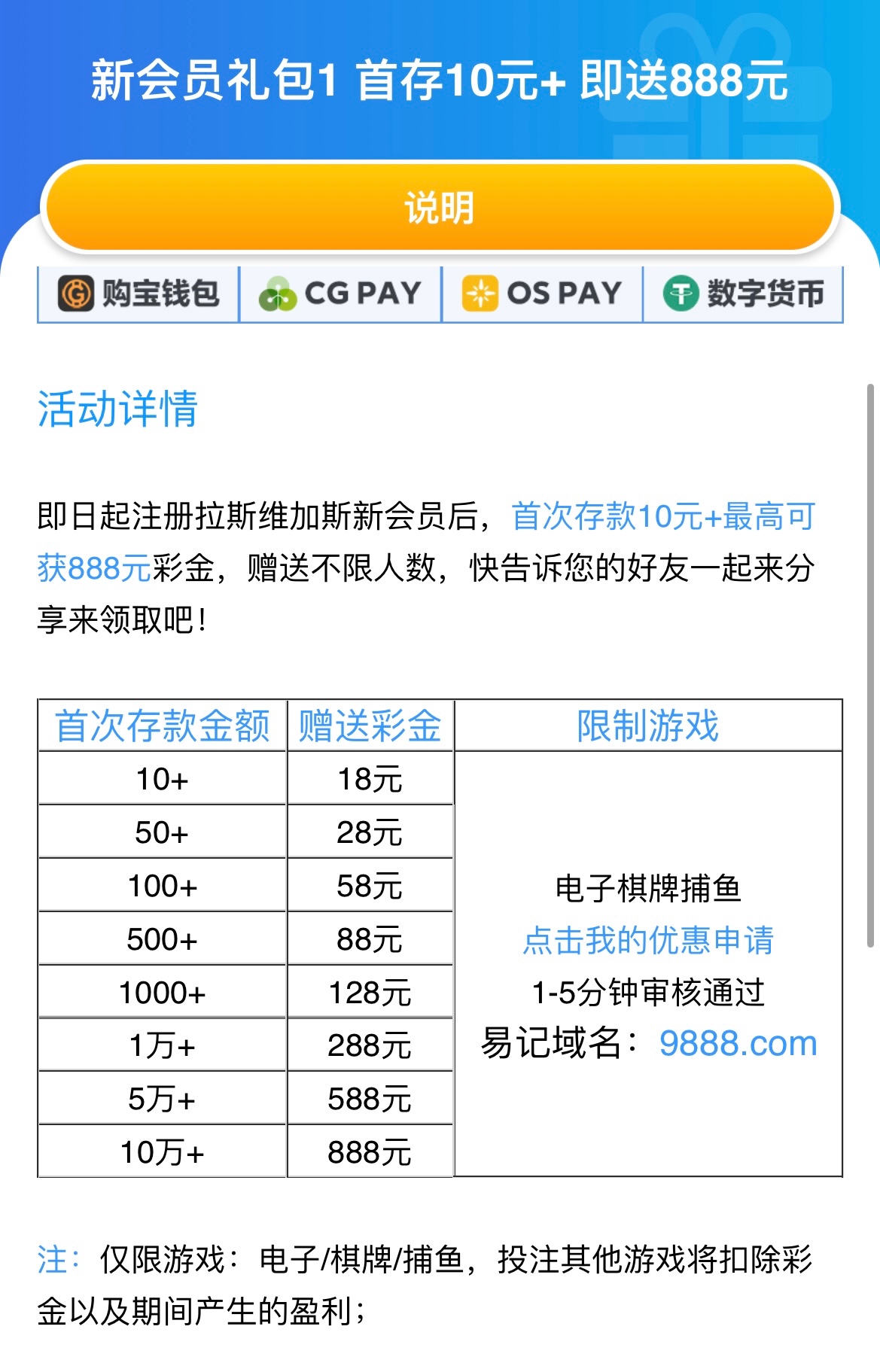 回馈:老用户存款过1+的自助领取18彩金以上
